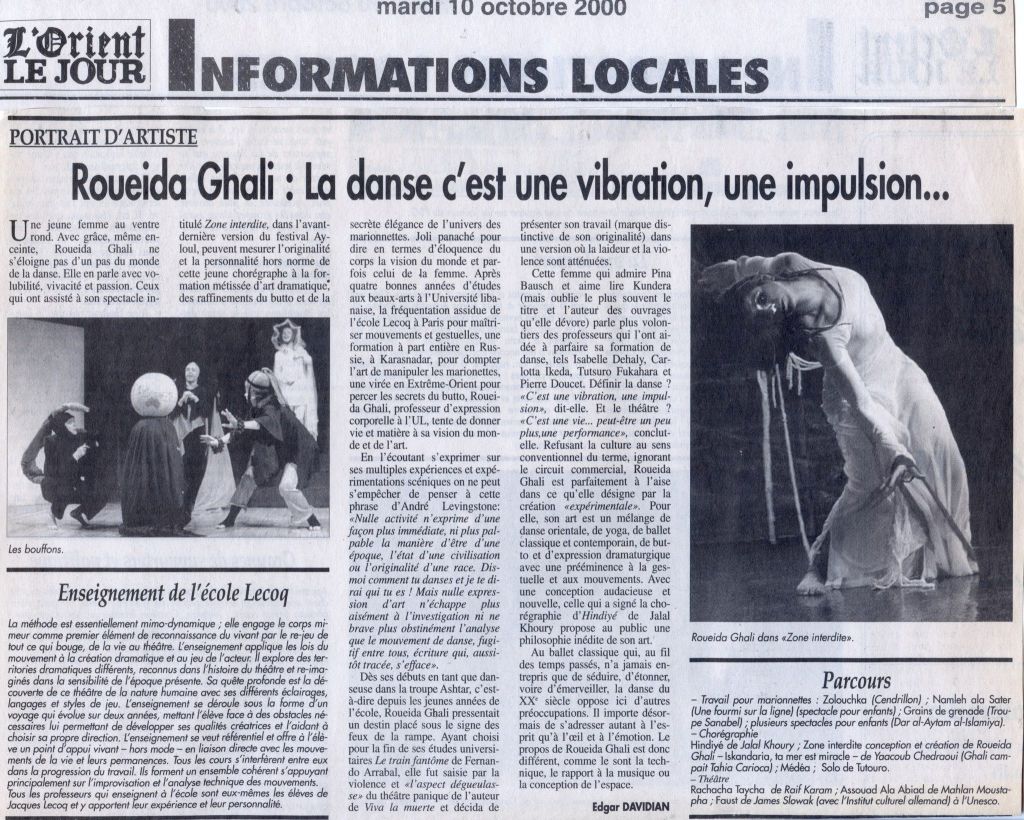Directory listing highlighting Roueida Ghali’s participation in the Lebanese branch of the International Dance Organization, supporting dance education and international exchange.